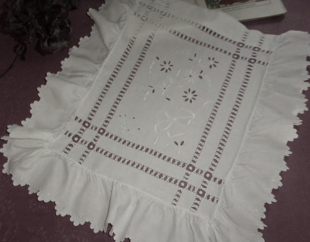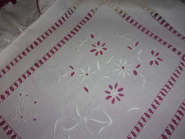 SUPERBE DESSUS DE BERCEAU ANCIEN BRODE